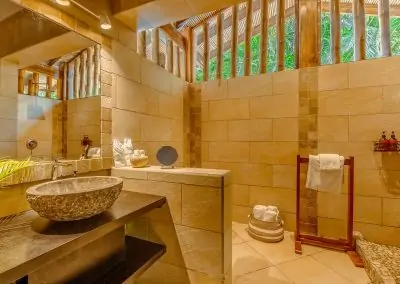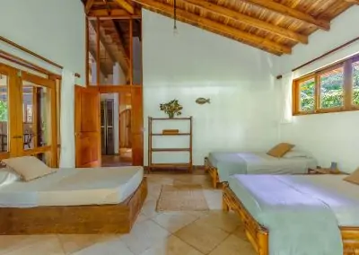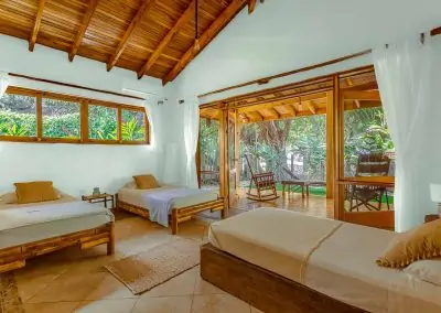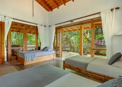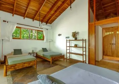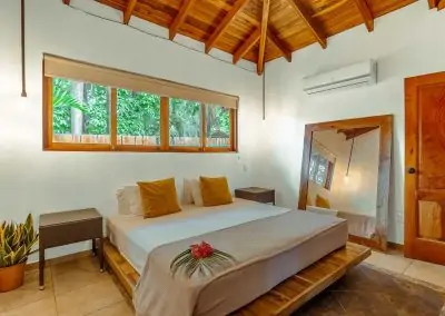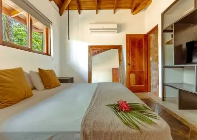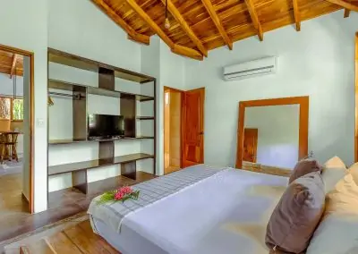 Wake up to stunning views of the jungle and ocean right from your villa. These two-bedroom, air-conditioned villas are ideal for families or groups of friends seeking both adventure and relaxation. The master bedroom features a plush king-size bed and a flat-screen TV, while the second bedroom can be customized with two single beds or a queen-size bed to fit your needs. For families of five, we can easily add an extra single bed.
