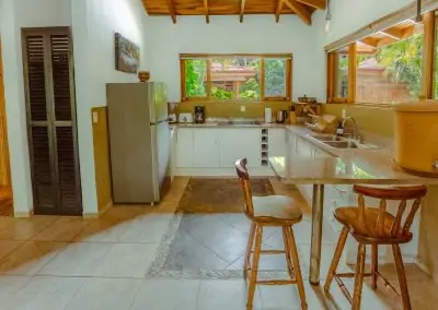 What truly sets these villas apart are the large windows that let nature in and the spacious balcony that brings the outdoor experience right to your doorstep. Enjoy meals at the outdoor dining table, or unwind in the hammocks and rocking chairs while you listen to the gentle sounds of the jungle and ocean. With a fully equipped kitchen and an outdoor living space, you’ll have everything you need to enjoy the perfect Costa Rican escape.